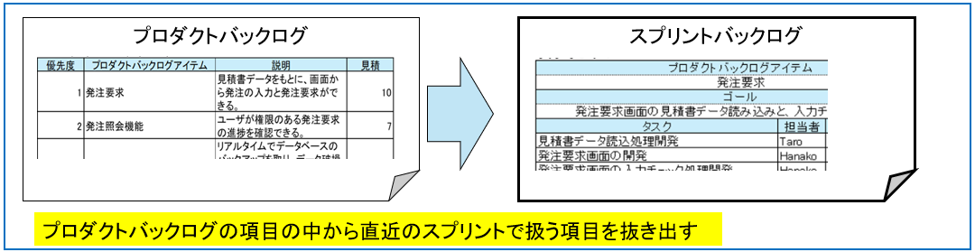 プロダクトバックログの項目の中から直近のスプリントで扱う項目を抜き出しをします。