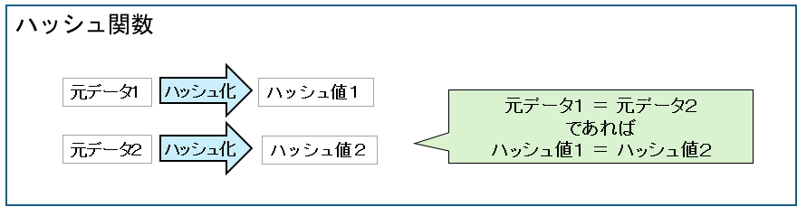 2つの元データが同じであれば、ハッシュ値も同じになります。
