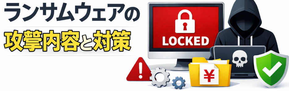 データを暗号化し身代金を要求するランサムウエアについて攻撃の内容と対策を説明します。