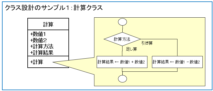 ・「計算」クラスは「数値1」と「数値2」のプロパティを使って足し算または引き算の計算をします。